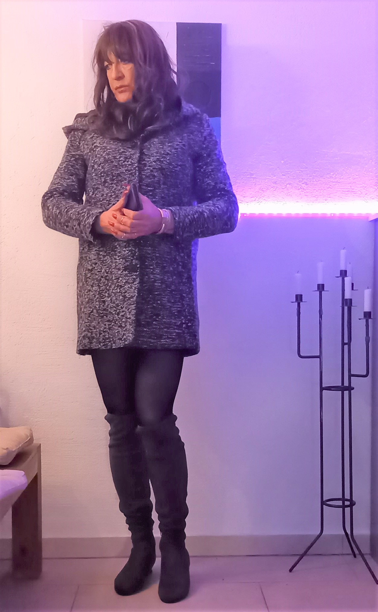 Ein tolles Erscheinungsbild: Betont weiblich mit teilweise zwar aufreizenden Details wie die Fingernägel, aber in der Gesamtanmutung sehr elegant ; absolut gelungen, wie ich finde. Mein Blick wäre sehr wahrscheinlich auch ein wenig länger an Dir hängengeblieben, hätte ich Dich so beim Einkaufen gesehen. Für mich bist Du genau auf dem richtigen Weg... LG.