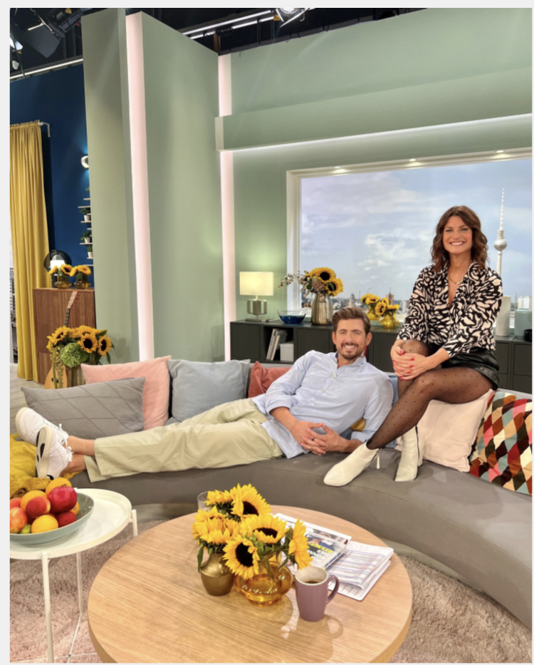 Im Nachspann kann man meist lesen wer die Moderatoren ausgestattet hat. Da stehen auch die Strumpfmarken dann.