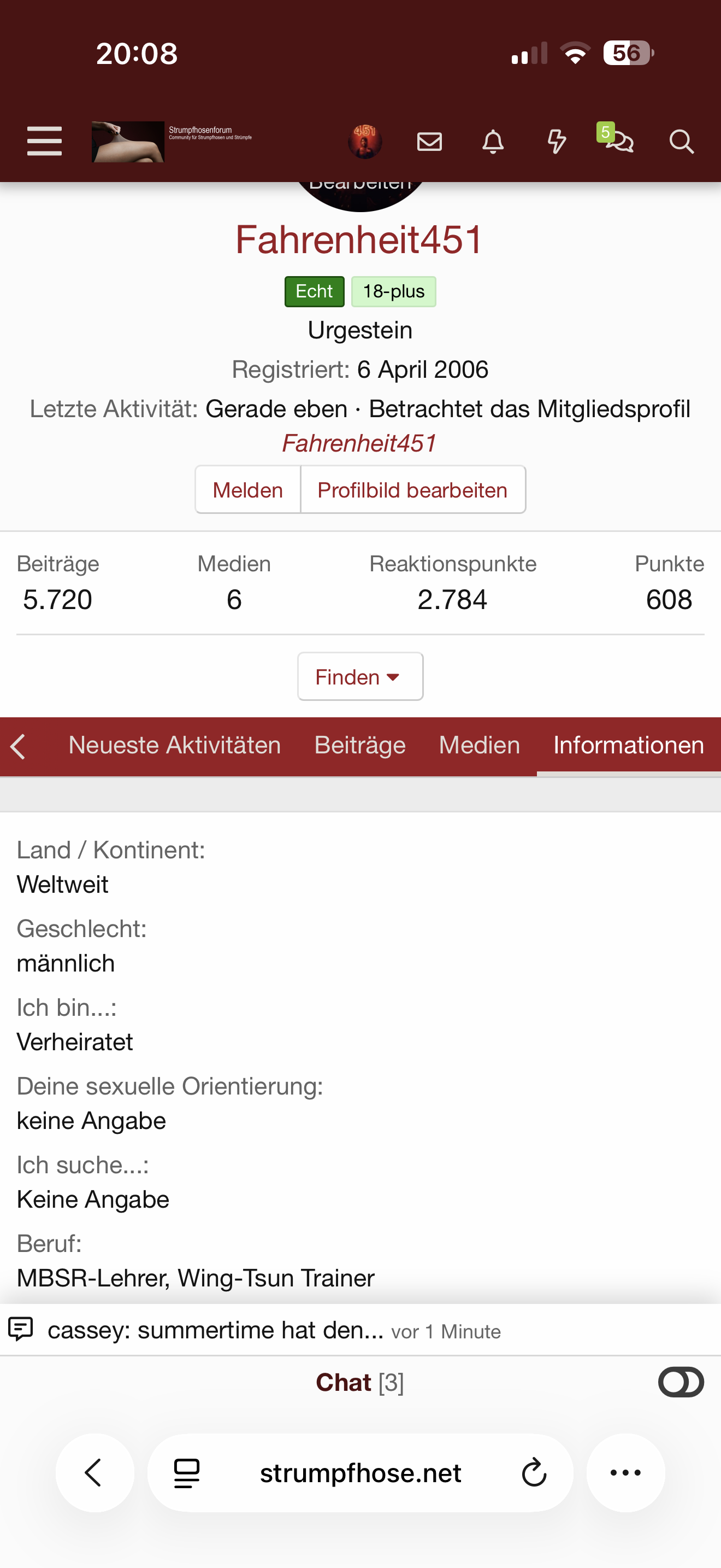 Die wissen in welchem Ort ich wohne, teilweise auch mit Adresse. Die wissen meinen Namen. Und die können sehen dass ich mit meinen 64 Jahren keine 20 mehr bin und kennen teilweise auch meinen Geburtstag. Sie wissen das ich verheiratet bin, und kennen meine Frau. Beruf früher/ jetzt ist auch allgemein bekannt, auch die Arbeitgeber. Was sie nicht wissen ist meine Strumpfhosen Lieblingsmarke- aber das interessiert im allgemeinen auch nicht. Über "sonstige Fetische, Marotten und Hobbys" tauscht man sich aus.